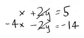 now? Now we can add the two equations together to eliminate y