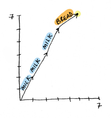 Lets see how we can use vectors to find a solution to the bread and milk question.