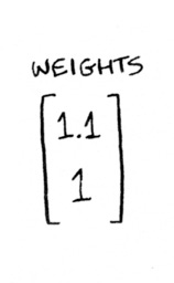 If I wanted the weather to matter 10% more, I could multiply by 1.1 before doing the addition.